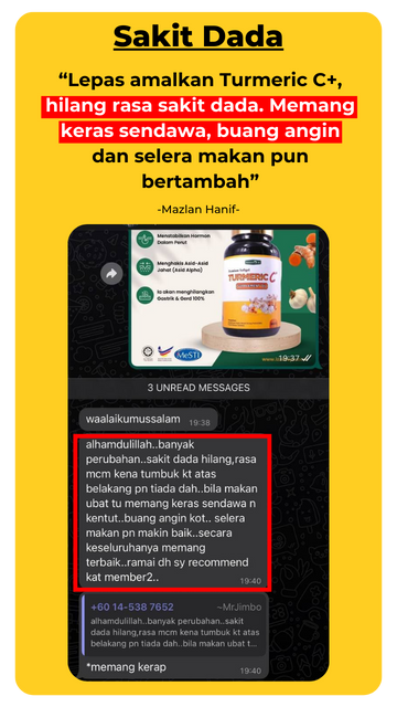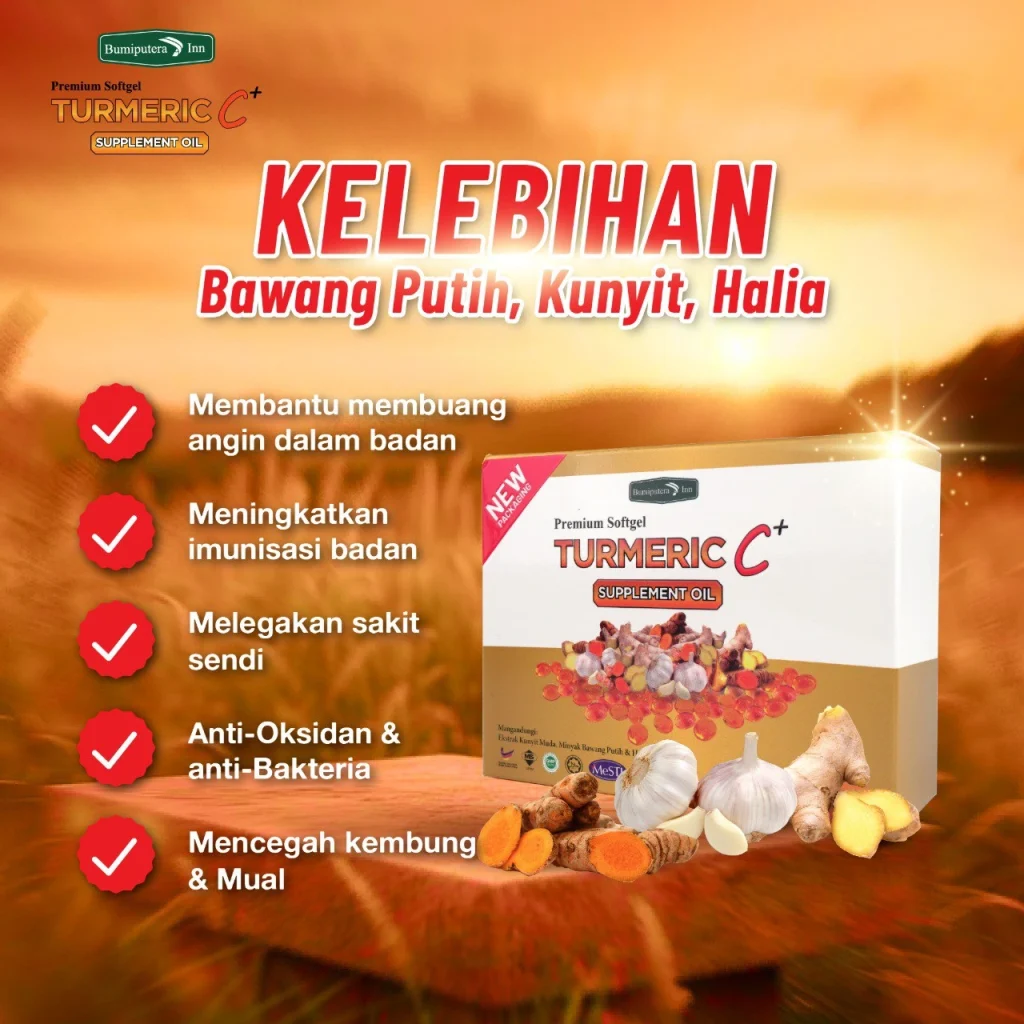 Hasil kajian daripada pakar perubatan Turmeric C+ Supplement terbukti secara klinikal mengandungi zat aktif kurkurmin yang bersifat antioksida dan meredakan kerandangan. Selain itu, ianya juga dapat mengurangkan risiko sakit jantung, mencegah kuman dalam tubuh badan dan meningkatkan imunisasi badan.